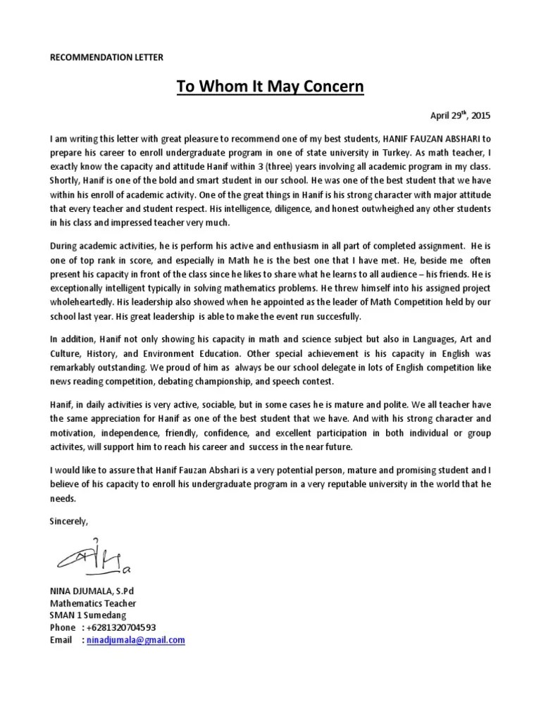 Setiap pendaftaran beasiswa hampir pasti memerlukan surat referensi atau surat rekomendasi (reference letter atau sering juga disebut recommendation letter). contoh surat rekomendasi beasiswa unggulan kemendikbud format 638 x 903 pixel. Kuliah di turki dengan beasiswa türkiye bursları (frequent ask question/faq) diposkan pada februari 22, 2016. Jangan lupa untuk menyesuaikan surat motivasi dengan jenis beasiswa yang kamu pilih, terutama jika pemberi beasiswa mengharuskan kandidat untuk mengikuti serangkaian acara yang diadakan. Tidak heran jika pemerintah indonesia baik dari pemerintah pusat sampai baca selengkapnya. Main street #221urbana, il 61801october 20, 2003music history search committeeindiana university of pennsylvania422 south 11th streetindiana, pa. Berikut recommendation letter dari mr. untuk singkatnya, kita sebut saja sr sebagai pengganti surat rekomendasi. The support and the writer were professional and the paper contoh essay untuk beasiswa bidik misi was delivered 1 day sooner than i expected. Let us send your 15% discount for any type of service on your email. Pada dasarnya seluruh pertanyaan sama dan diperuntukan kepada semua jenjang. contoh surat minat letter of intent have a graphic associated with the other.contoh surat minat letter of intent in addition, it will feature a picture of a kind that might be observed in the gallery of contoh surat minat letter of intent. Maka dari aparat desa/kelurahan, dari pemerintah setempat, dan berbagai pihak lainnya.