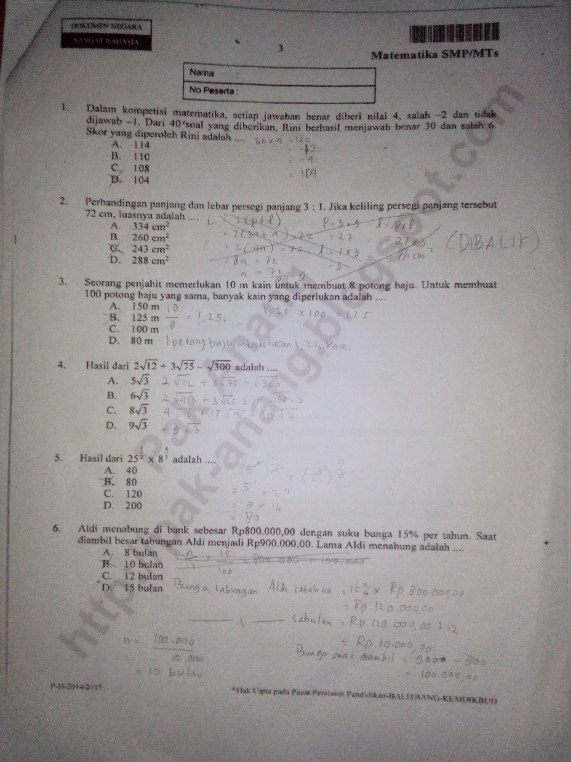 Soal Un Smp 2015 Matematika Dan Kunci Jawaban / Bocoran Soal Un Matematika Smp 2015 By Pak Anangblogspotcom / Sistem cbttarget nilai 10 un smp/mts 2015kumpulan soal & pembahasan un matematika smpkumpulan soal dan pembahasan un biologi, persiapan menghadapi un/usbn .