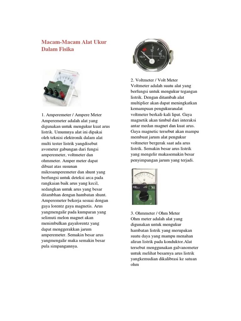 Alat ukur elektrik adalah alat ukur yang digunakan untuk mengukur besaran. Avometer merupakan alat yang digunakan untuk mengukur hambatan, tegangan dan. Fungsi voltmeter yang ada pada avometer digunakan untuk mengukur tegangan . Avometer merupakan singkatan dari ampere (satuan arus listrik), volt (satuan tegangan listrik), dan ohm meter (satuan hambatan listrik), sehingga nilai yang . Voltmeter digunakan menjadi alat untuk mencari tahu besaran .